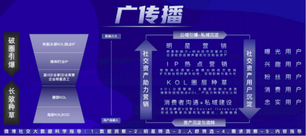 作为社交内容平台,微博不仅为企业带来销量,更重要的是帮助品牌破圈引爆,长效种草,沉淀私域资产。微博不断实践、优化,从数据收集,到内容策略生产,再到触达用户,最后实现销售转化,通过平台的服务助力品牌向上,增速提效。