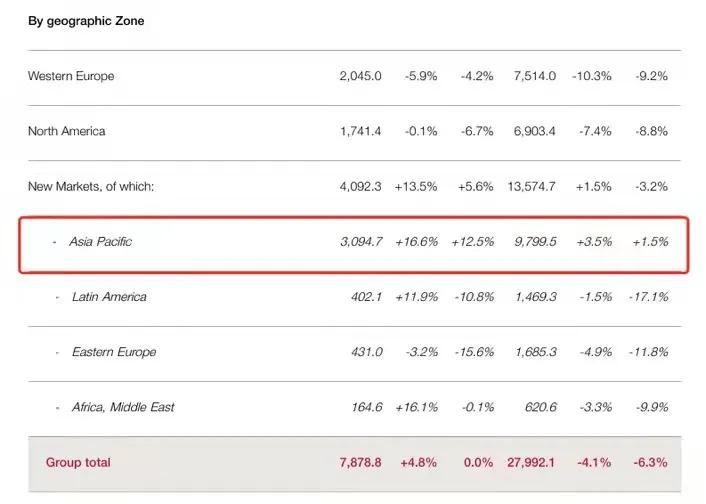 财报显示,亚太地区销售额整体增长3。5%至98亿欧元(约合767亿元人民币),其中第四季度受到电商的强劲推动,以及全渠道对高端品牌的需求,转暖明显,同比增长16。6%。