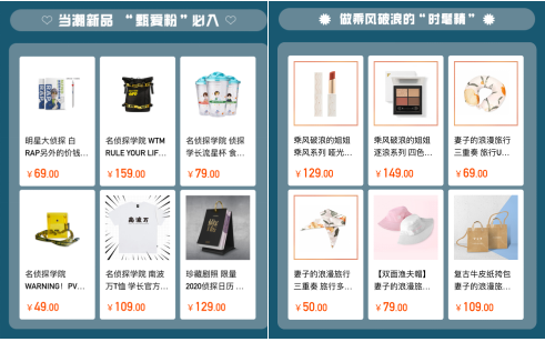 由《明星大侦探》,《密室大逃脱》和《天天向上》等芒果TV的长视频内容衍生而出的周边,各路明星的官方周边和爱豆同款类等商品已经上线。此外,还有Tokidoki和变色龙等知名潮玩品牌入驻。