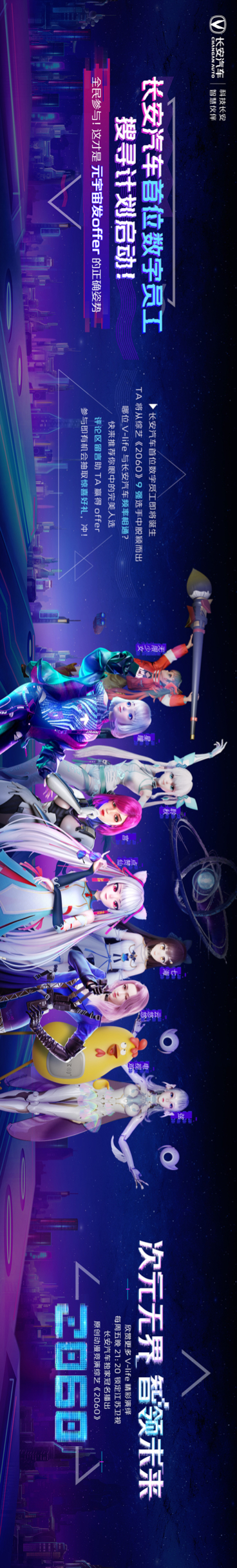 此外,长安汽车计划在《2060》9强选手中招募一位虚拟“数字员工“,链接前沿科技,使Ip属性最大化赋能品牌,深化品牌智慧科技定位。