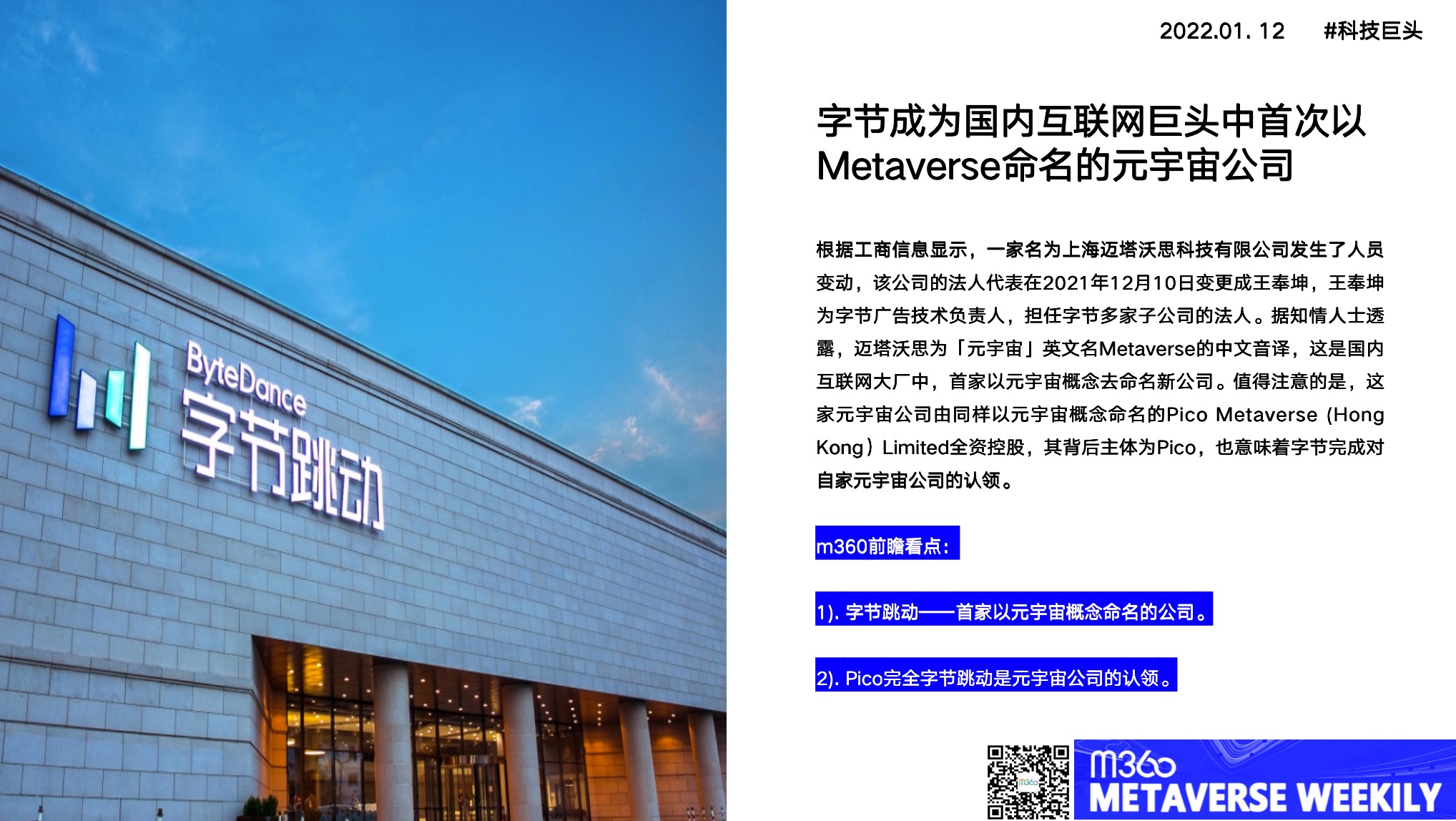1). 字节跳动——首家以元宇宙概念命名的公司。