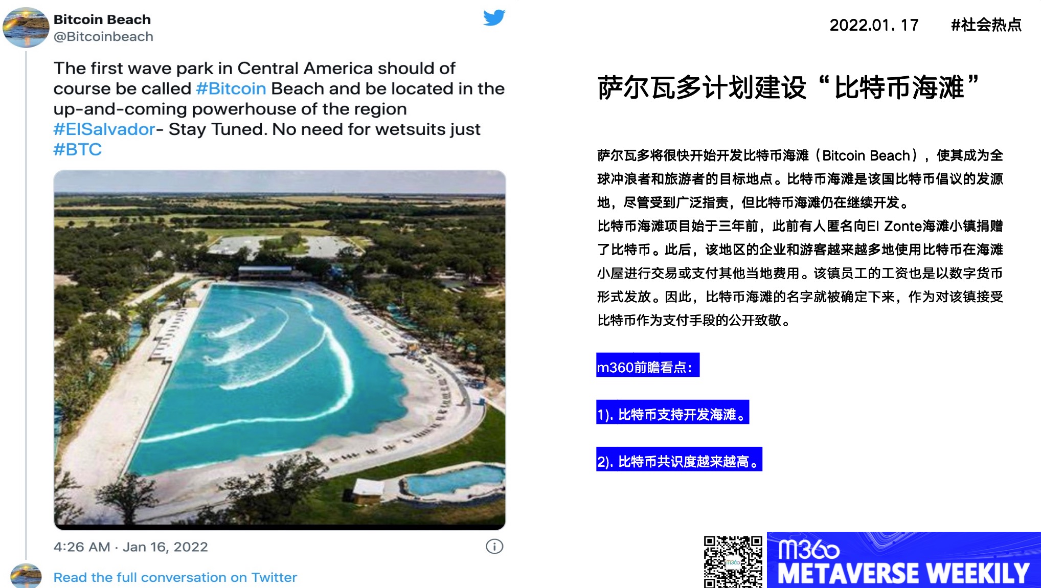 萨尔瓦多将很快开始开发比特币海滩(Bitcoin Beach),使其成为全球冲浪者和旅游者的目标地点。比特币海滩是该国比特币倡议的发源地,尽管受到广泛指责,但比特币海滩仍在继续开发。 比特币海滩项目始于三年前,此前有人匿名向El Zonte海滩小镇捐赠了比特币。此后,该地区的企业和游客越来越多地使用比特币在海滩小屋进行交易或支付其他当地费用。该镇员工的工资也是以数字货币形式发放。因此,比特币海滩的名字就被确定下来,作为对该镇接受比特币作为支付手段的公开致敬。