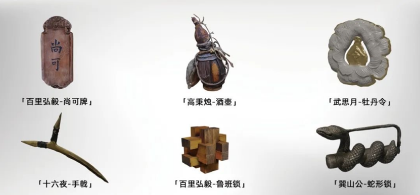 其中,道具数字藏品“高秉烛-酒壶”、“百里弘毅-尚可牌”、“百里弘毅-鲁班锁”、“武思月-牡丹令”、“十六夜-手戟”、“巽山公-蛇形锁”是围绕主角的随身配饰和影响剧情的关键道具,如武思月的御赐牡丹令在剧中具备“见此令者悉数听从差遣”的功效,也是剧情发展的重要线索。