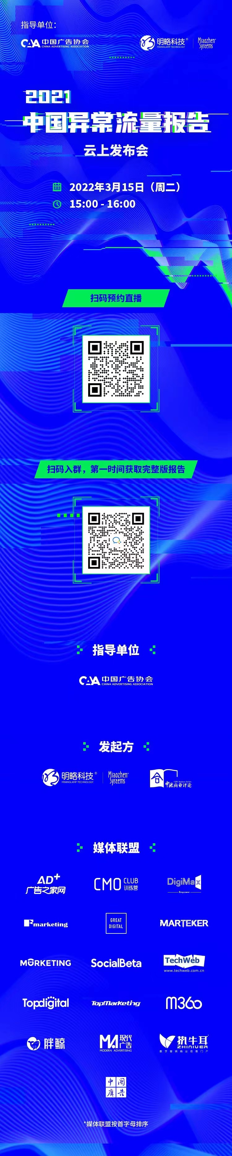 3·15当天,秒针系统将举办线上发布会,发布《2021中国异常流量报告》,呼吁营销生态各方携手共促流量透明,共建清朗营销生态。