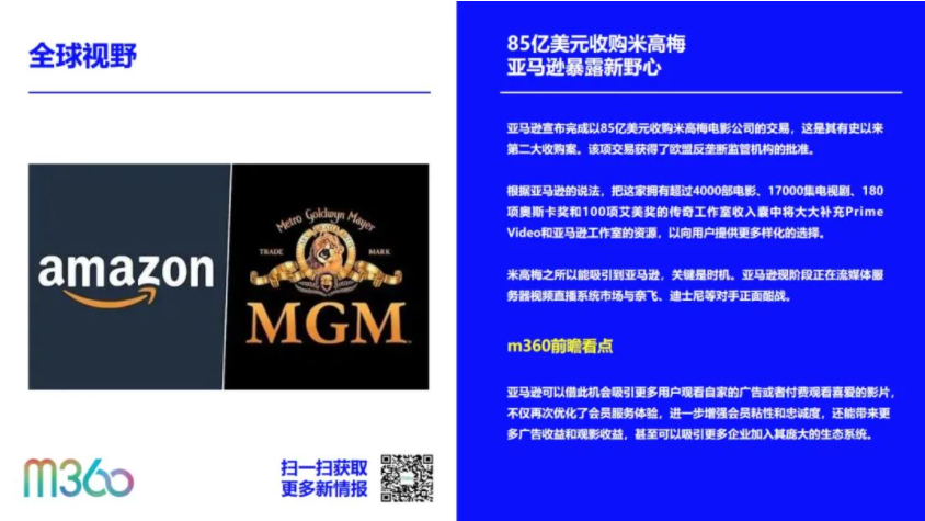 85亿美元收购米高梅 亚马逊改写流媒体新格局?| m360互联网周报