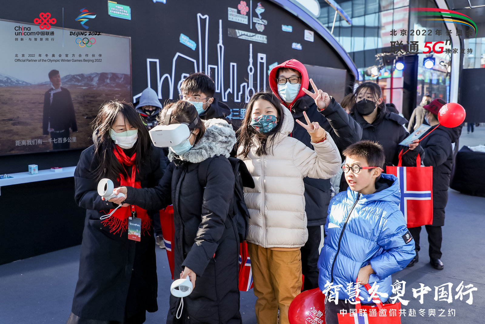 特别是在中国联通的VR滑雪体验区,游客不用亲赴雪场就可以沉浸式地感受到滑雪运动的独特魅力,以及中国联通带来的智慧冬奥科技体验。络绎不绝的游客也因此在体验区前大排长龙,等待参与打卡体验。
