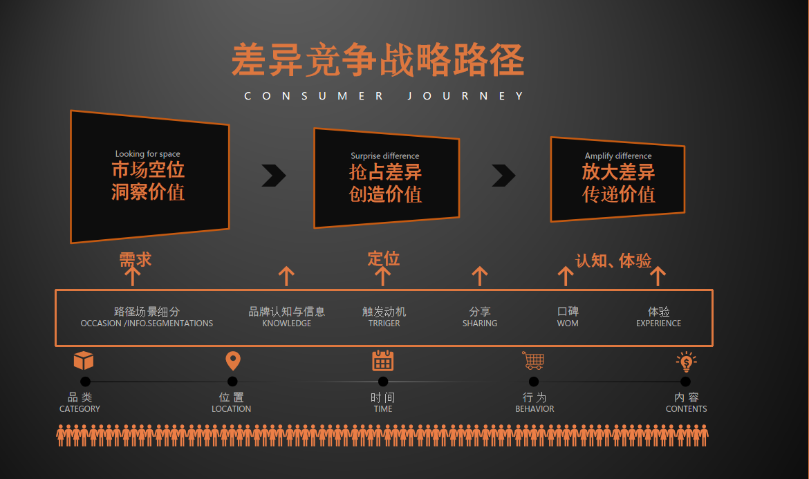第一位,要把竞争优势转化成认知优势,从用户角度了解他的真正需求,并且去抢占差异,我们称之为抢占差异。