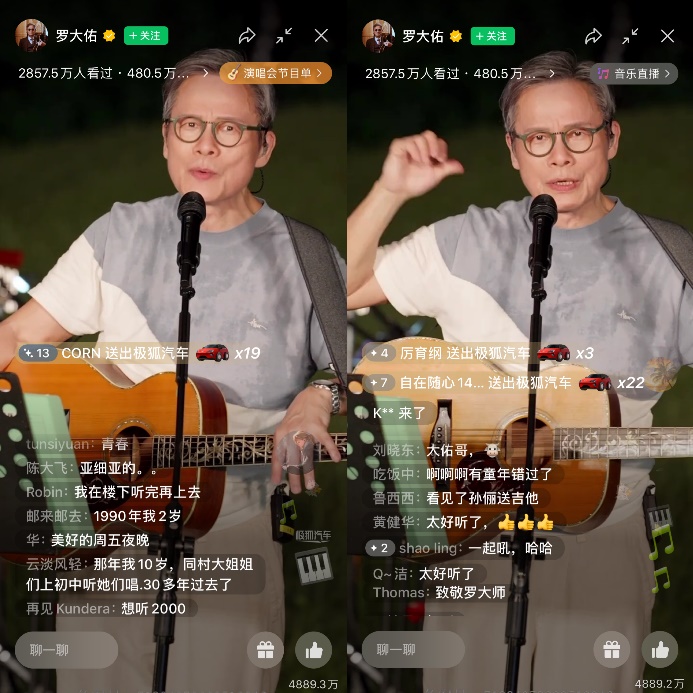 继崔健演唱会之后,5月27日,极狐汽车再度联手视频号打造品牌营销大事件——罗大佑线上演唱直播吸引了近4200万人观看,再次全网刷屏。据悉,这是视频号打造的第二场商业化的演唱会直播。