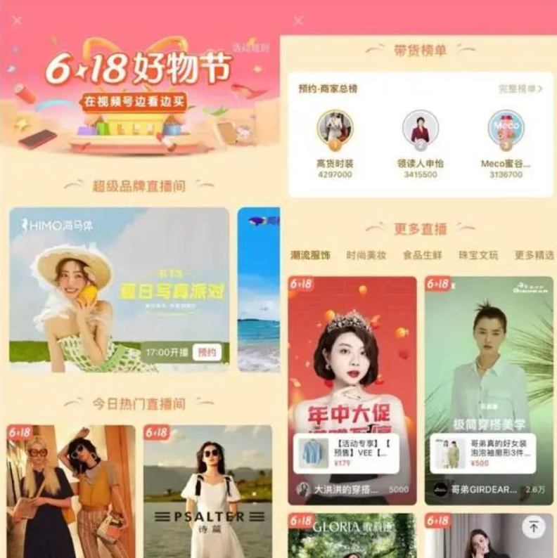 作为电商上半年最重要的S级大促活动,从平台端来看,集齐了最全阵容,视频号推出“6.18 视频号直播好物节”,官方首次参战,一举一动无疑都成为业界关注的焦点。这也造就了抖音、快手、微信视频号三大短视频直播平台,首次在年度大促中“正面交锋”。