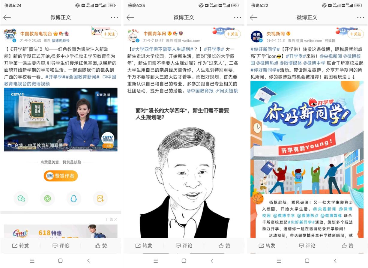图:#开学季#媒体官方微博参与话题