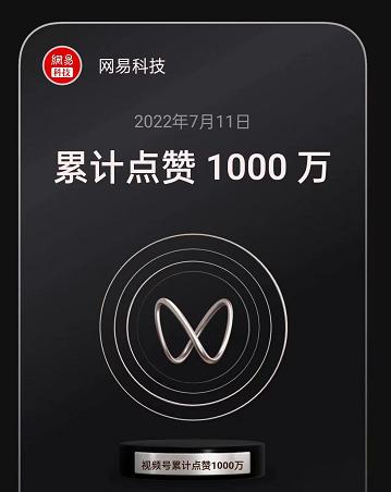 在7月11日的视频号“累计点赞里程碑”中,“网易科技”视频号获得了“点赞1000万”的勋章。