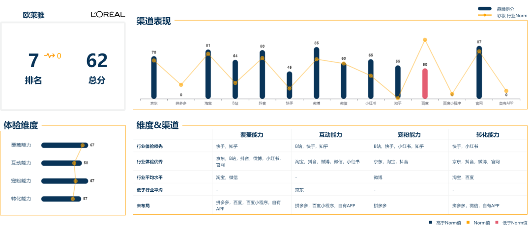 彩妆行业排名第7是『欧莱雅』,品牌排名未变,品牌体验得分为62分。.png)
