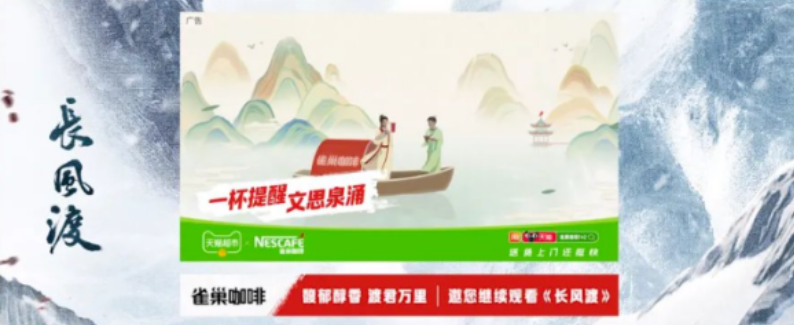 作为一部40集长度体量的大剧,《长风渡》在情节上层层演进,从前期少年夫妻甜爽逗趣的生活日常,到后续守卫家国、践行理想的热血剧情,观众的追剧热情和情感投入持续走高。剧中品牌全程伴随着用户,比如雀巢“馥郁醇香,渡君万里”,在剧情完整周期中持续与用户沟通,就可以不断夯实品牌与用户的长久关系,成为用户心智认准的优选品牌。