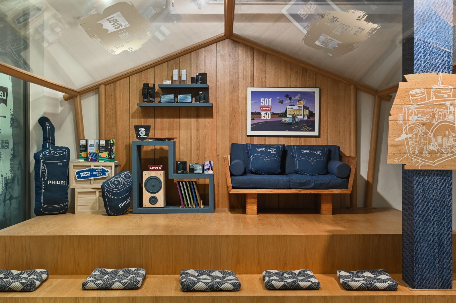 7月1日—7月31日,除了整栋建筑外立面被XXXXXL码牛仔裤兜住外,内部空间还打造了时下流行的牛仔风露营基地。