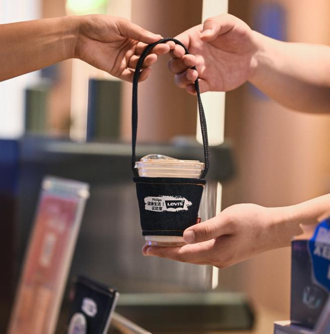 前往飞利浦健康生活Lab或Levi's® space打卡并发布照片,集满18个赞就能获赠限量定制周边——联名随行杯套,牛仔质地出门够酷!