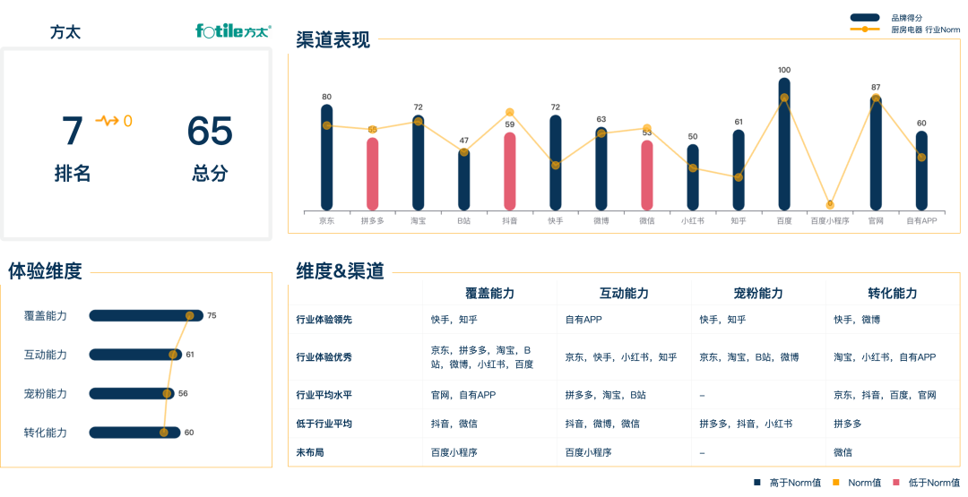 厨房电器行业排名第7是『方太』,品牌排名未变,品牌体验得分为65分。