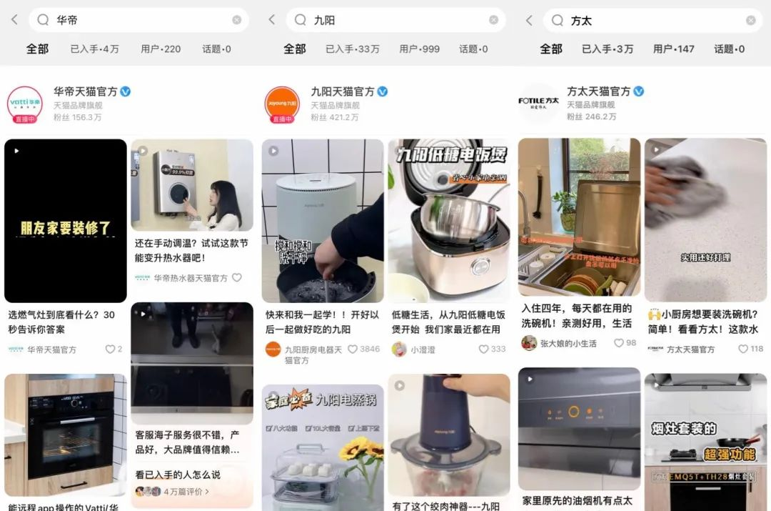 据新锶体验数据显示,监测的所有厨电品牌均在淘宝“逛逛”模块有内容呈现。、在“逛逛”板块发布品牌的相关内容,并邀请用户参与内容共创互动,展示品牌的产品特点、功能、优势、使用方法等,让消费者更加了解和信任品牌。