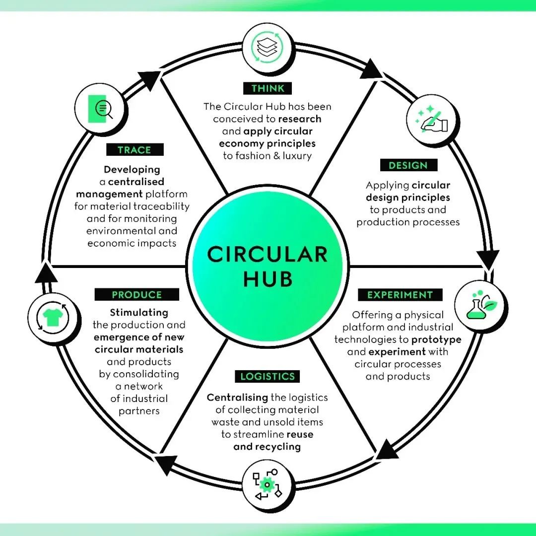 2023年2月21日,Gucci宣布在母公司开云集团(Kering)的支持下,在意大利推出首个循环型奢侈品中心。循环中心(Circular Hub)旨在通过重新定义整个价值链,加速意大利时装业生产模式的循环化转型,支持创造面向未来的循环型奢侈品,即最大限度地使用回收材料、耐用性、可修复性和可回收性的产品。