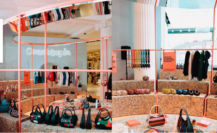 Coach推出专注可持续时尚的子品牌——Coachtopia,专注于循环工艺与再生材质。旗下产品皆以环保材质打造,包款、鞋履、服装等单品均采用可回收、可再生的面料制作,部分原材料则来自于Coach在产品制作过程中所切割下来的边角皮革。