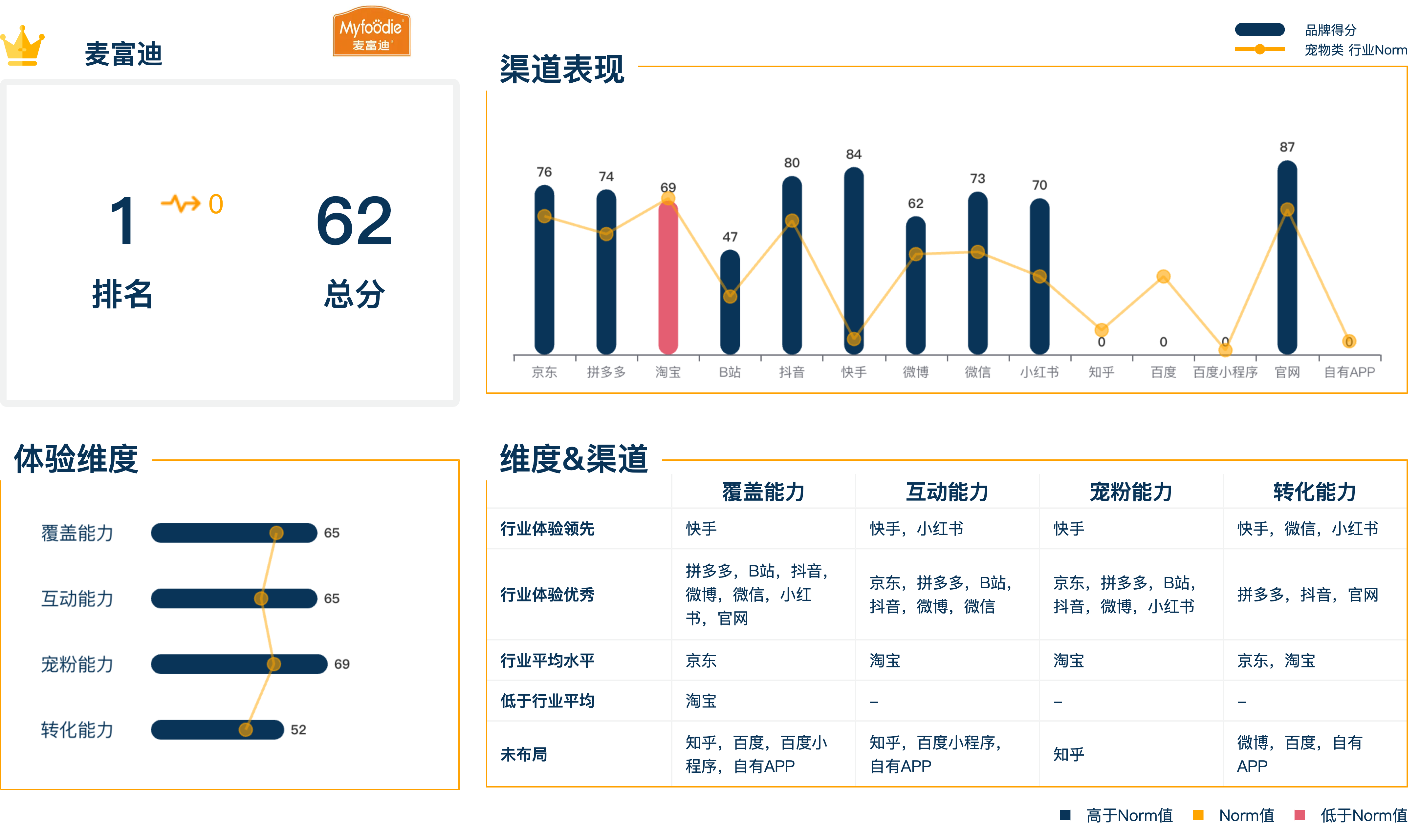 宠物类行业排名第1是『麦富迪』,品牌排名未变,依旧占据本期行业第一,品牌体验得分为62分。.png)