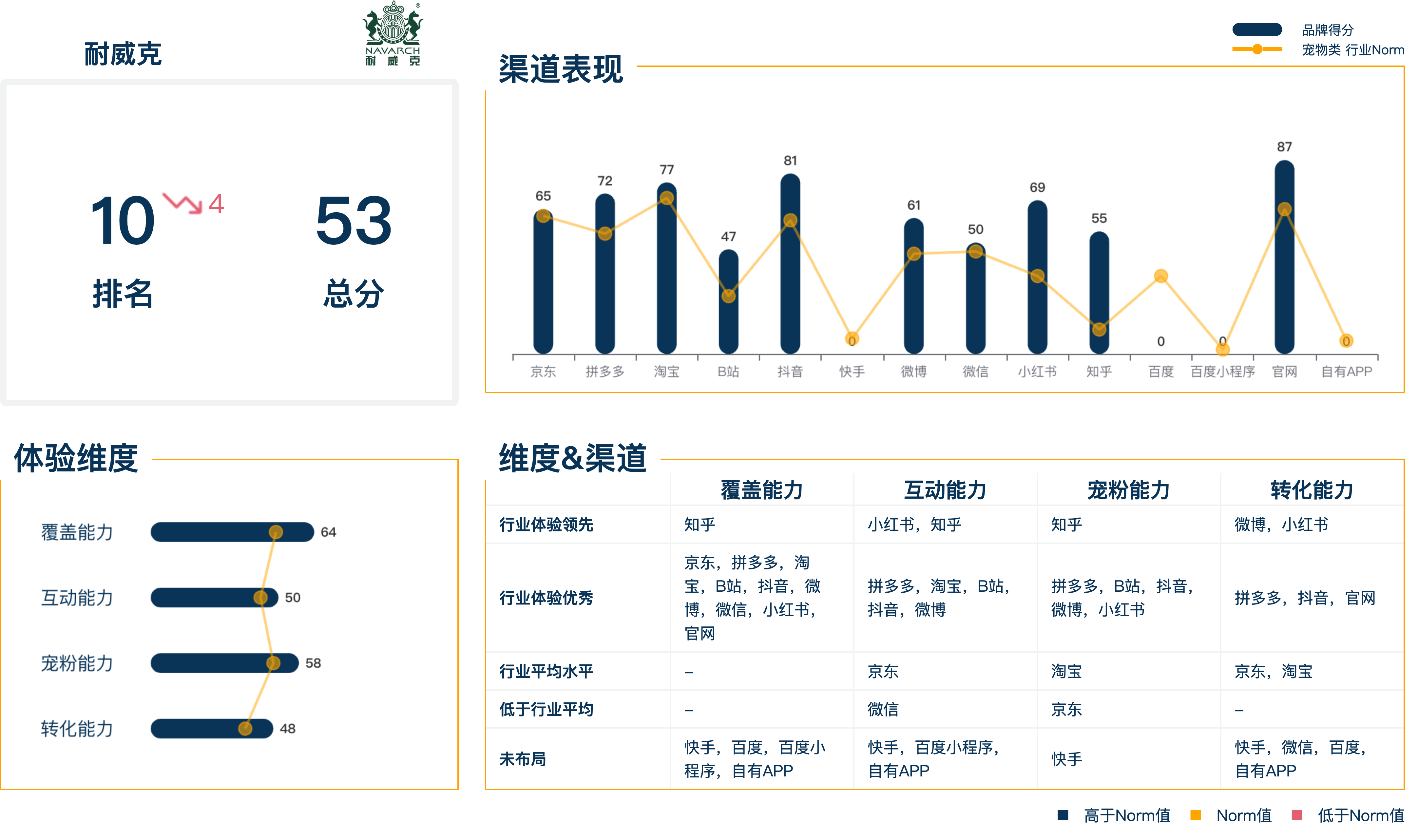 宠物类行业排名第10是『耐威克』,品牌排名相对上一期下降4名,品牌体验得分为53分。.png)