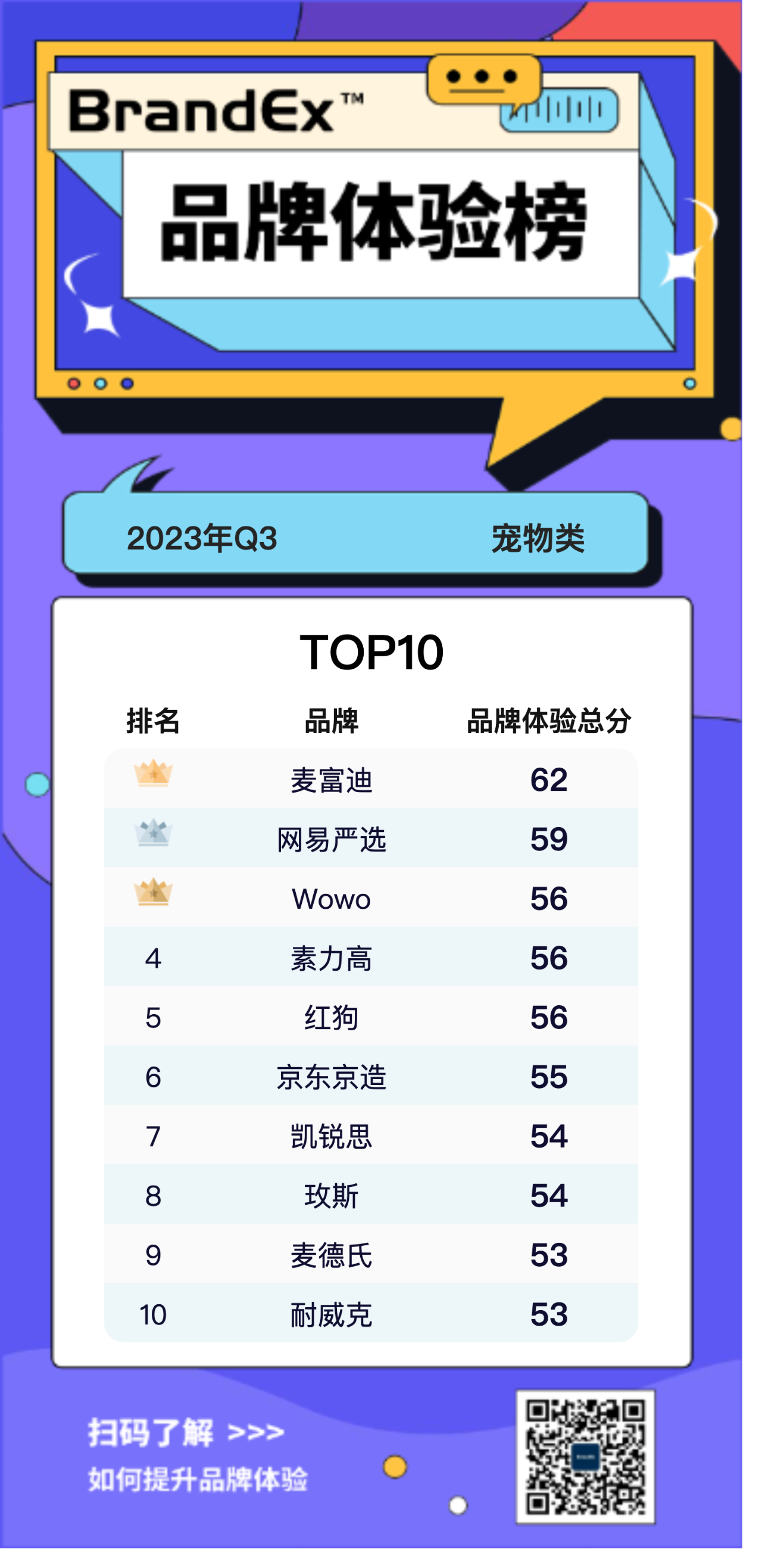 2023年Q3品牌体验榜-宠物类行业品牌TOP 1 麦富迪