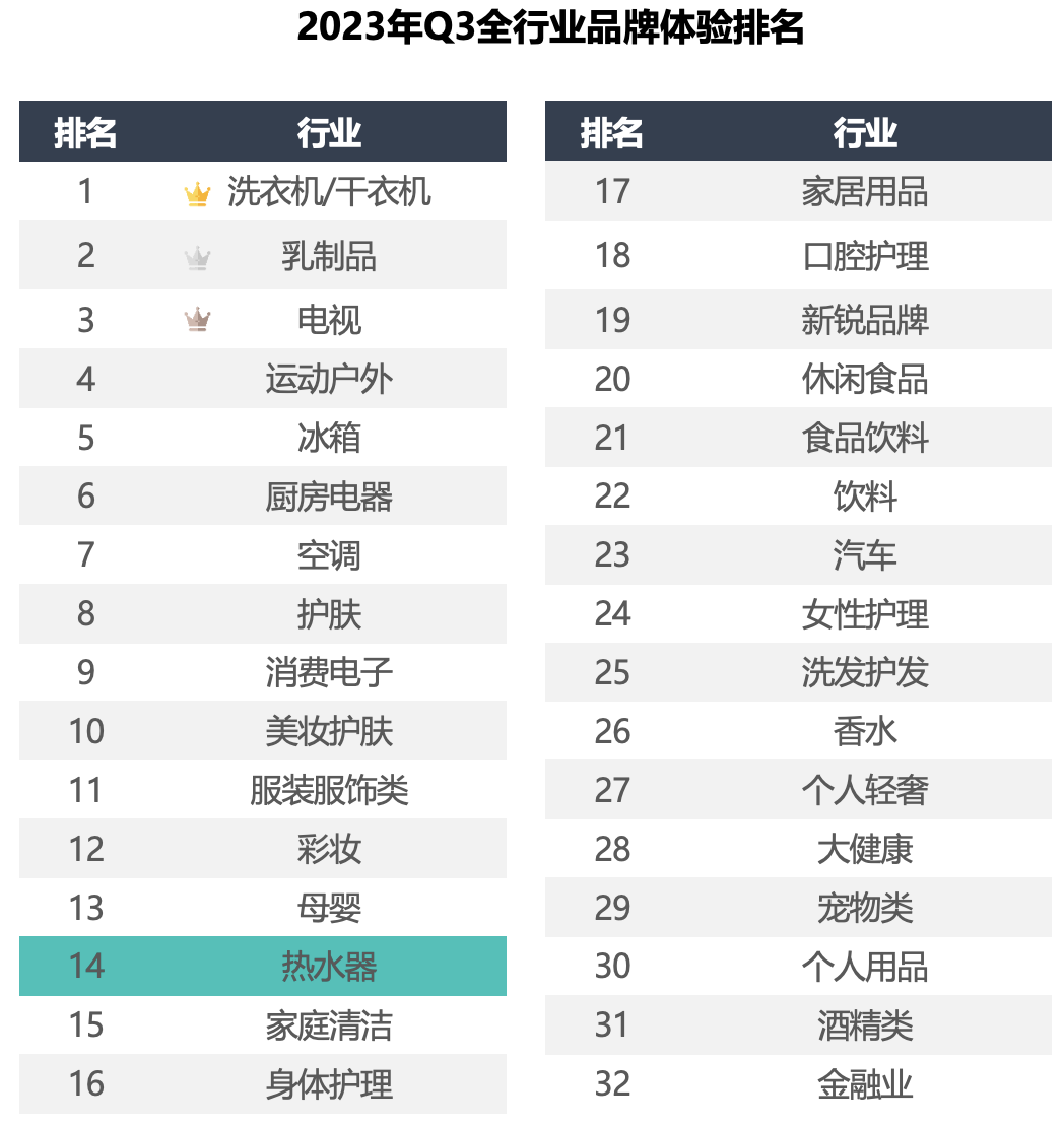 2023年Q3品牌体验榜-热水器行业TOP 1 美的