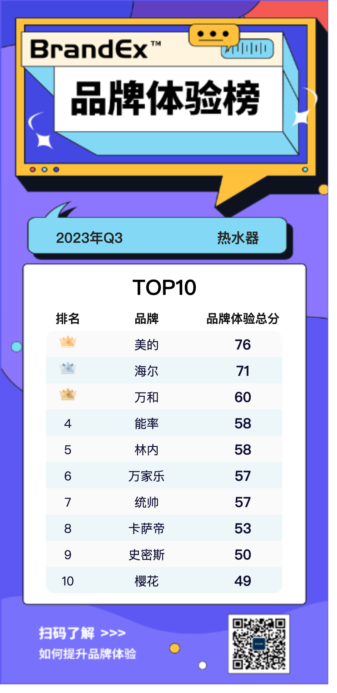 热水器行业排名第3是『万和』,品牌排名相对上一期上升3名,品牌体验得分为60分。.png)