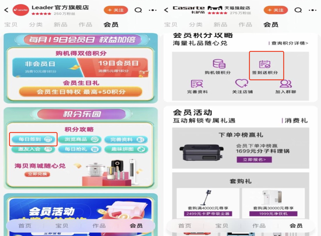 卡萨帝/统帅-淘宝-会员签到