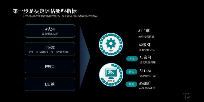 模型使用的第一步就是决定用哪些指标。如果我们自己去确定一些指标的话,很容易会出现重复和遗漏,前面几位嘉宾也分享了我们现在的一些营销框架,营销框架是很好的一个路线图,因为你可以根据营销框架来确定指标都能覆盖到。比如说一个购买的指标,如果我们没有营销框架的话,我们可能就是单独去权衡购买这个指标对于投放的影响。但如果我们有一些模型,我们就可以知道购买它其实是可以拆成购买和复购的。这样就可以确定哪些指标需要放到模型里边。