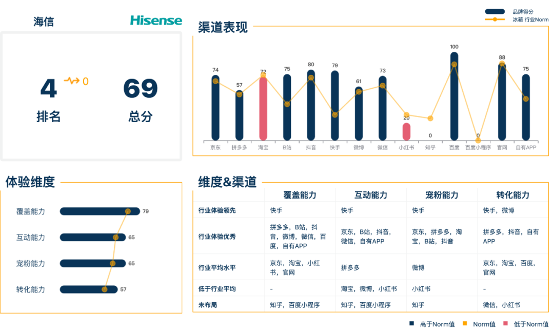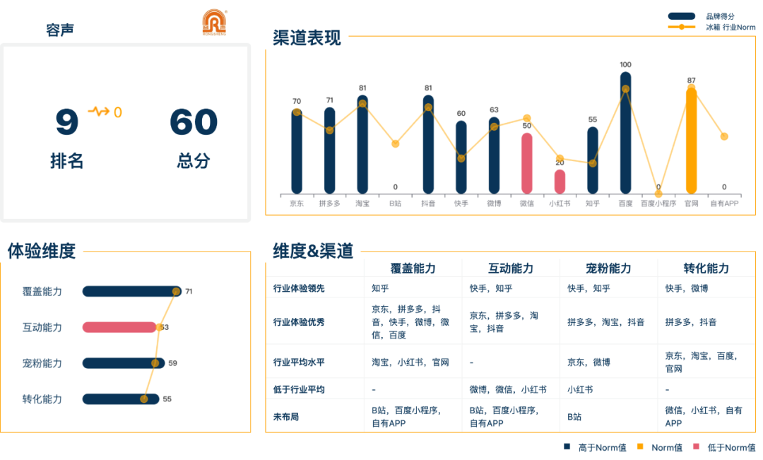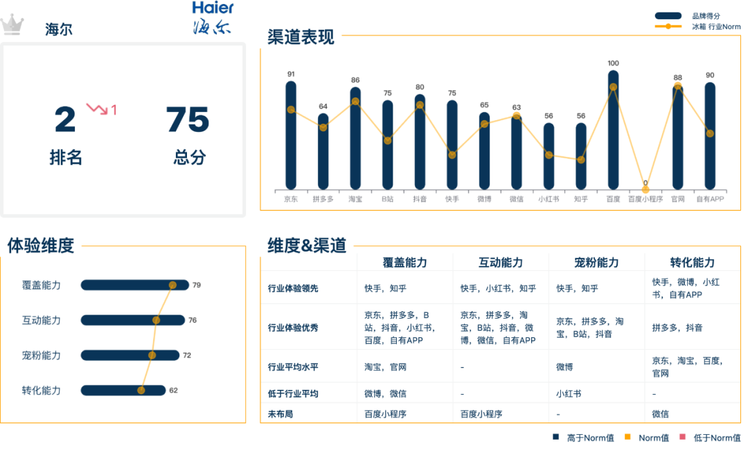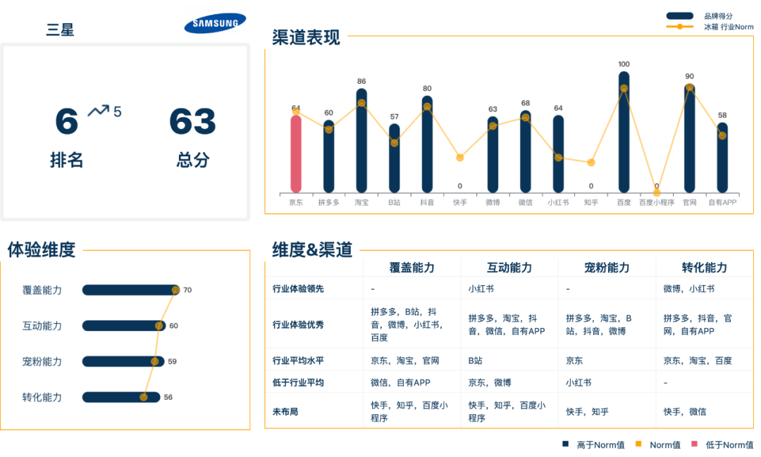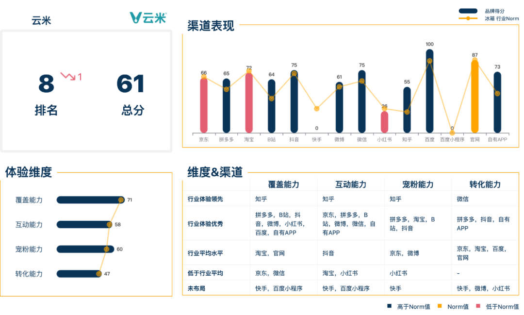 总体来说,冰箱行业的渠道数字化能力较为强劲,能够在大多数渠道上做到较为令人满意的渠道数字化。