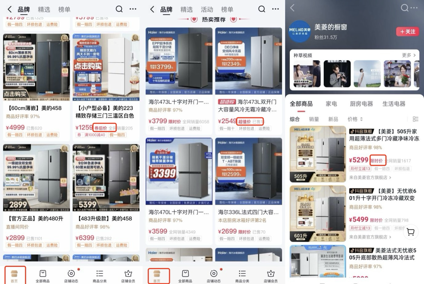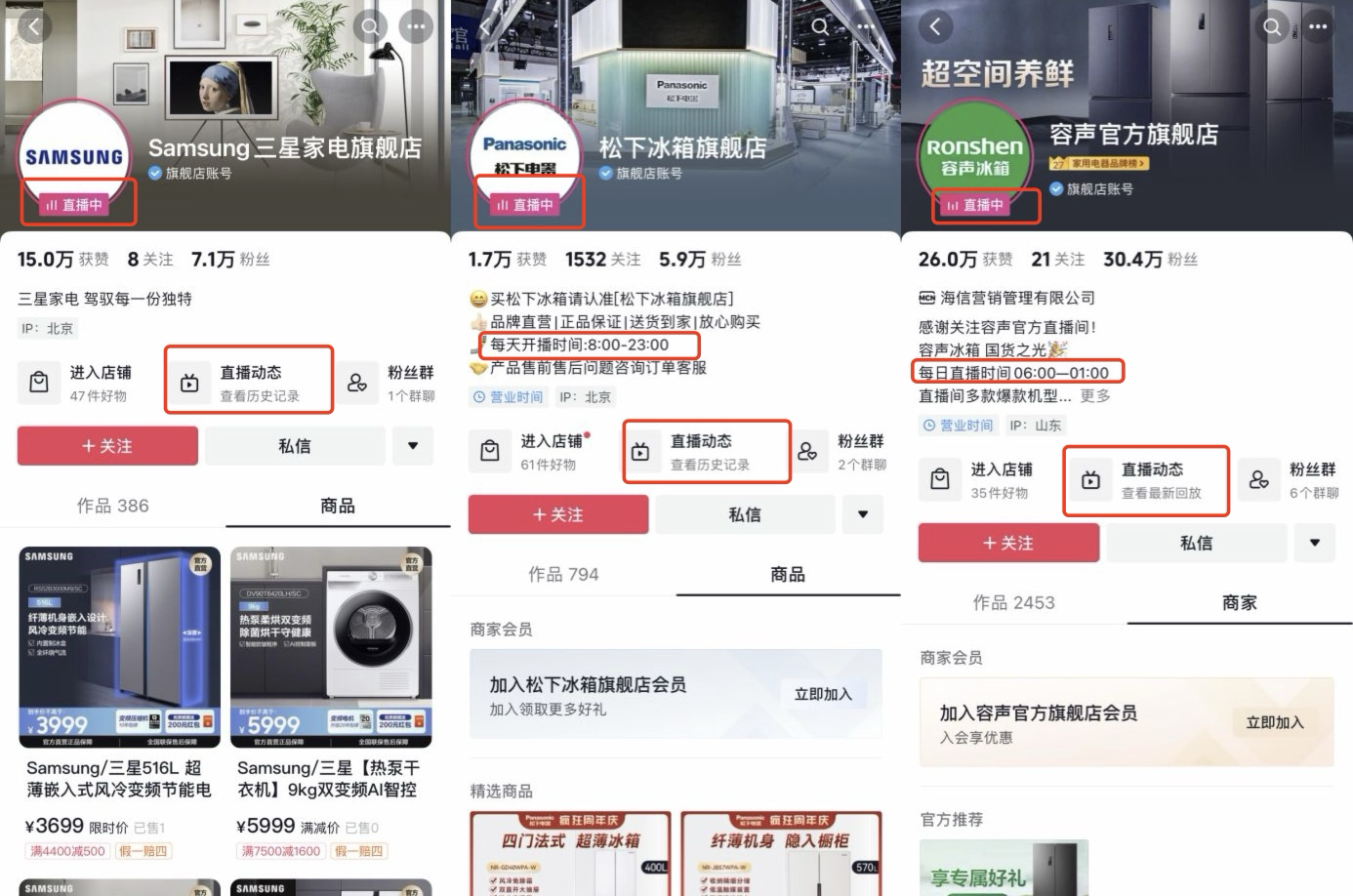 为了拓展销售渠道,冰箱品牌本季在抖音平台继续铺设官方店铺,本季有91%的品牌开通了抖音官方旗舰店,比上一期增加了14%。