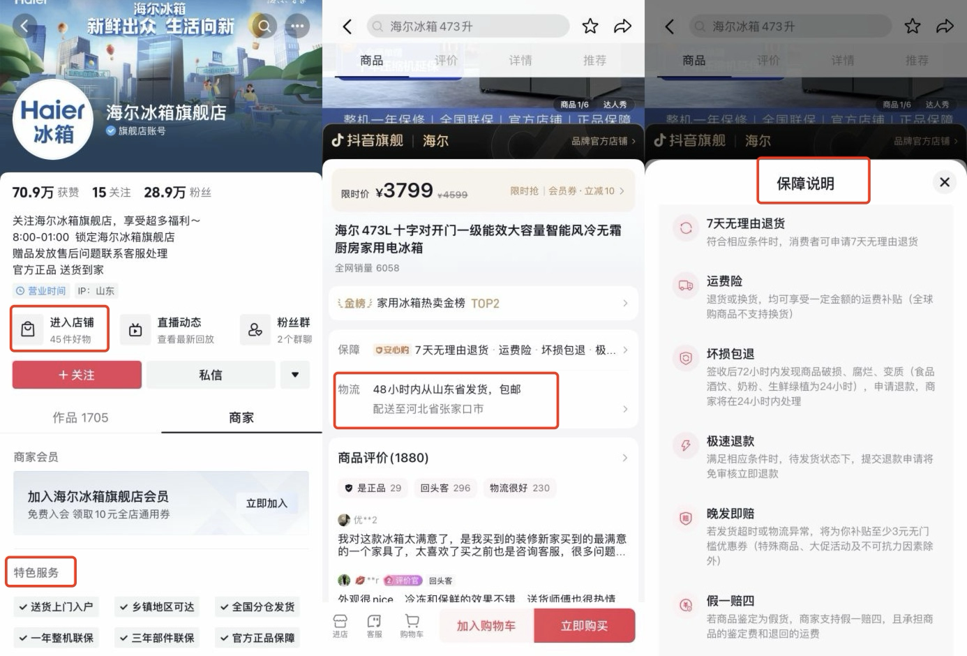 官方店铺出售的商品都经过了品牌方的认证,所售商品的质量和市场定价都受到品牌方的严格控制与保障。通过官方店铺,消费者可以直接在抖音平台上完成购买,降低了其跳转成本,提高了购买便利性。
