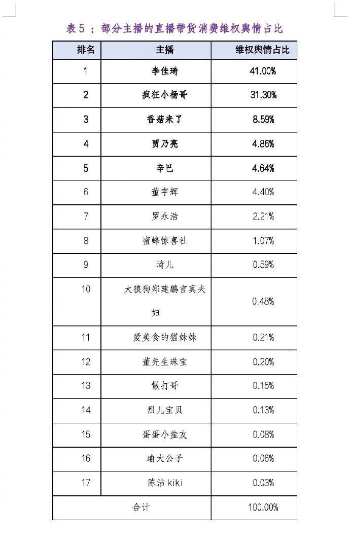 《2023年直播带货消费维权舆情分析报告》发布,对17位主播的维权舆情数据进行了深入剖析。李佳琦的维权舆情最多,占比高达41%,主要涉及产品质量问题。疯狂小杨哥和辛巴的不文明带货问题受到关注,贾乃亮和辛巴的发货问题也成为舆情焦点。今年,李佳琦因怼网友事件引发广泛讨论,而疯狂小杨哥在直播中的不当行为也引发网友不适。