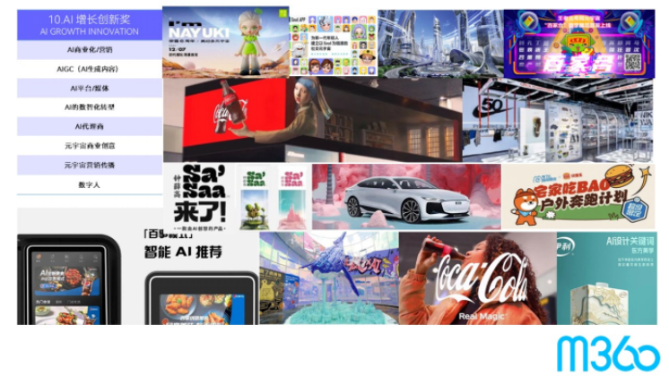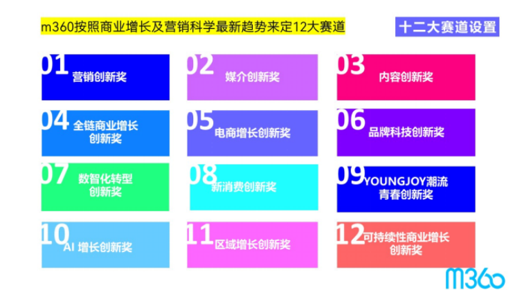 基于此,2024年春日,第11届m360奖焕新开启,从第10届的十大赛道全新升级至12大黄金赛道,新增“区域增长创新奖”、“可持续性商业增长创新奖”,和全新升级“AI增长创新奖”,再加上十大常规黄金赛道:营销创新奖、媒介创新奖、内容创新奖、全链商业增长创新奖、电商增长创新奖、品牌科技创新奖、数智化转型创新奖、新消费创新奖以及YOUNGJOY潮流青春创新奖,为鼓励和奖励更具创新性、更能可持续发展的品牌、企业和代理公司,为他们提供更多展现自己优质案例的机会。