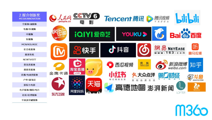 包括宝洁、联合利华、宝马、麦当劳等广告主,巨量引擎、百度、腾讯、阿里、快手、微博、分众传媒、湖南卫视、浙江卫视等媒体,传立、阳狮、OMG、华扬联众等服务商,都参与到了m360奖。