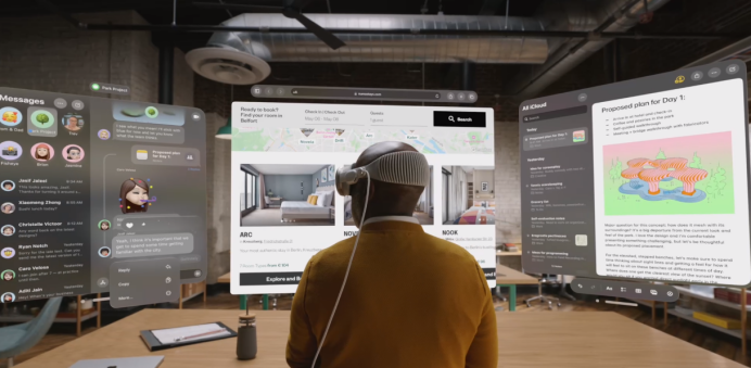 苹果把Home View搬到了你的家里、你的公司,你所在的任何地方。这无疑是电子产品交互界面史上革命性的一步。周围的空间,都变成了无限的画布。在这里,你不仅可以随意使用任何APP,而且可以把它们调成你喜欢的任意尺寸。