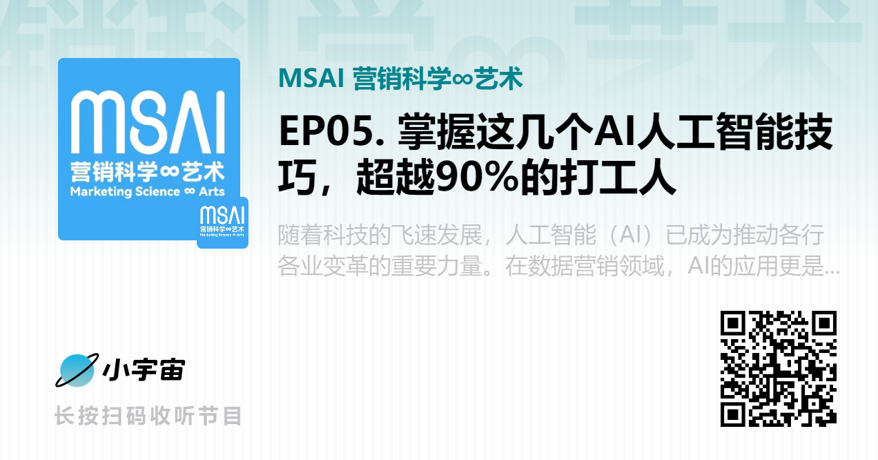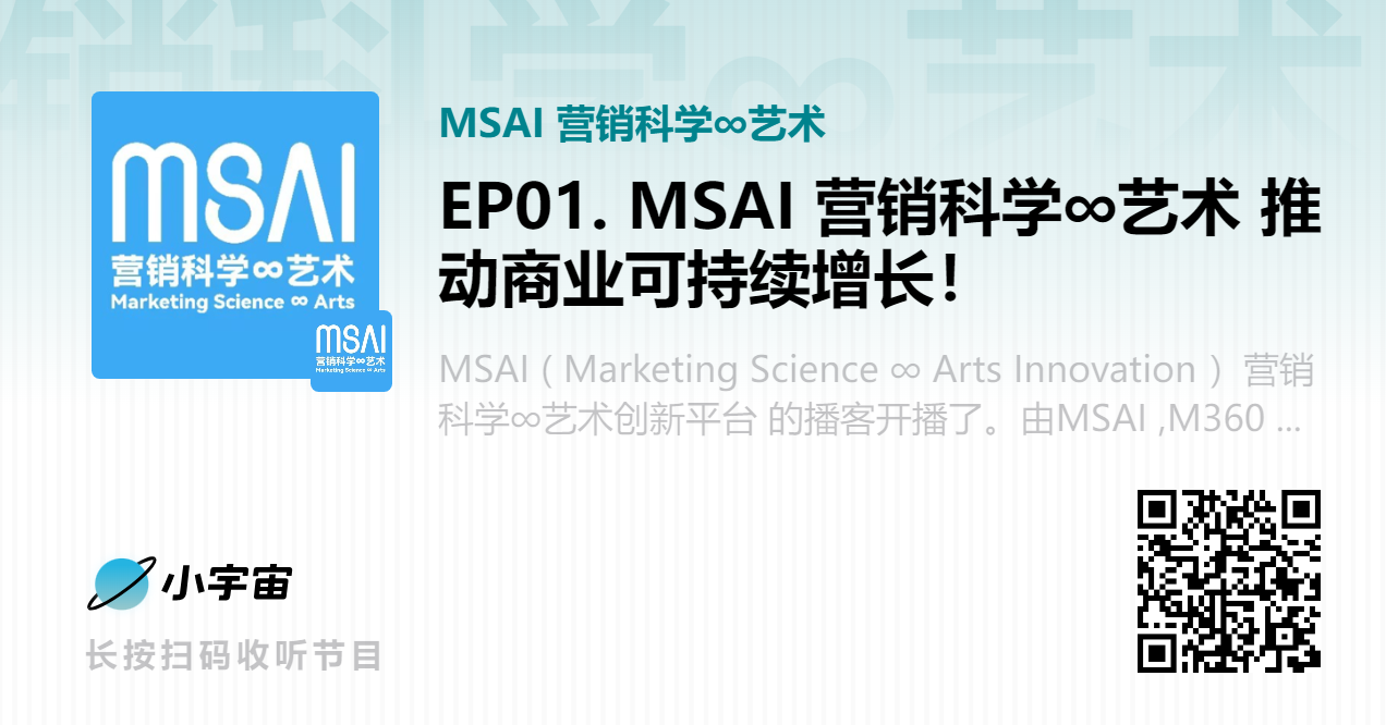 欢迎您关注和收听 MSAI ( Marketing Science ∞ Arts Innovation )营销科学∞艺术创新, 用科技与艺术的力量,推动商业持续增长!