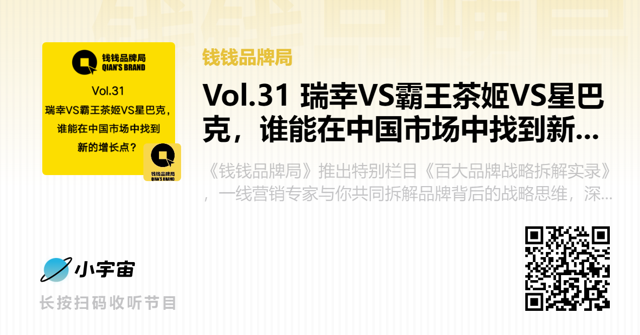 第一期聚焦茶饮咖啡赛道,中国的咖啡跟茶饮市场正处于一个残酷的鏖战阶段,中国品牌跟国际品牌之间的一个竞争可谓是刺刀见红,瑞幸VS霸王茶姬VS星巴克在品牌战略上的较量,不仅是市场份额的争夺,更是一场关于品牌理念、市场定位和消费者心智的深度博弈。
