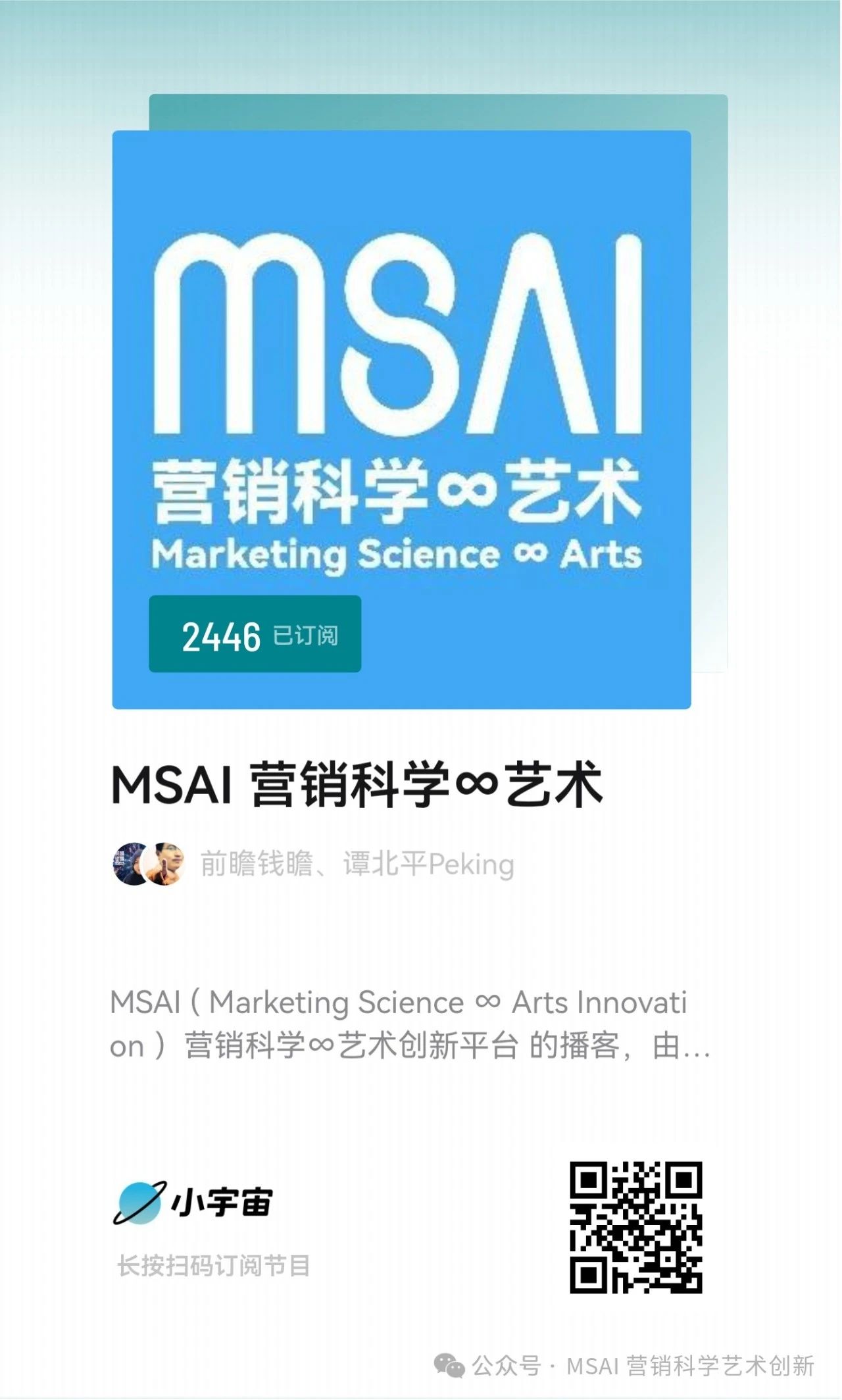 MSAI ( Marketing Science ∞ Arts Innovation )营销科学∞艺术创新平台的播客,由 M360 MSAI & 创+平台创始人 钱峻 及 营销科学家 谭北平 联合主播。