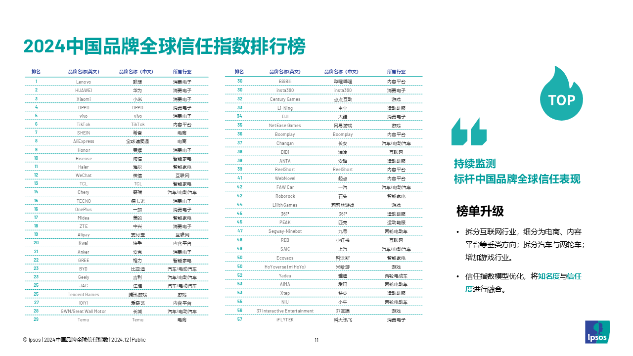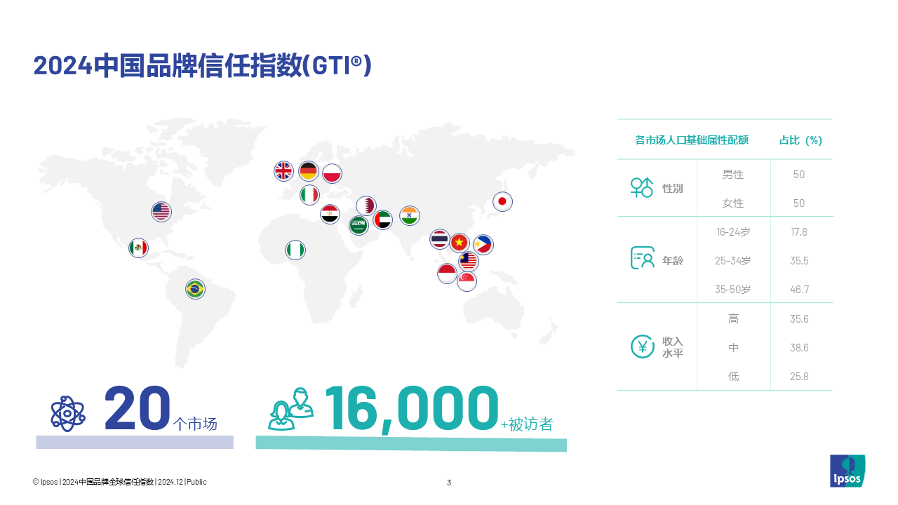 为更深入地分析中国品牌在全球的信任表现,助力中国品牌走向世界,全球最大的市场研究和咨询公司之一益普索近期在上海发布了《2024 中国品牌全球信任指数 GTI®》报告(以下简称《报告》)。