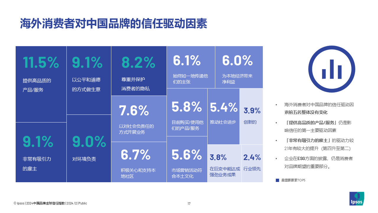 随着中国标杆品牌在海外的影响力和信任度不断增加,越来越多的中国品牌正在抓住全球市场机遇,深入洞察不同市场需求,持续优化产品和服务,积极履行社会责任,讲好品牌信任故事,最终实现从 “走出去” 到 “走上去” 的跨越,在全球舞台上绽放更加耀眼的光芒。