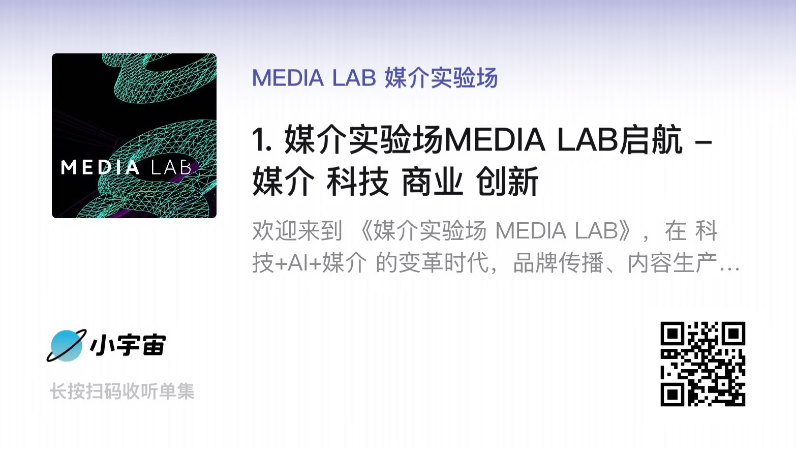感谢收听《媒介实验场 MEDIA LAB》! 订阅我们的播客,加入 媒介科技与商业创新的前沿讨论! 联系我们,探索 科技+AI+媒介增长实验,共创未来!