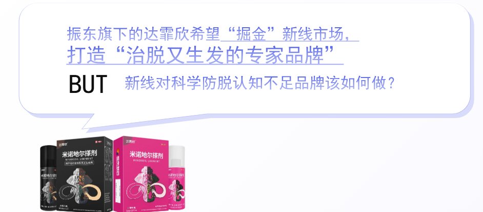 - 科普患教:提升新线用户对脱发问题的认知,科普米诺地尔这一有效成分,让消费者了解达霏欣的产品原理。