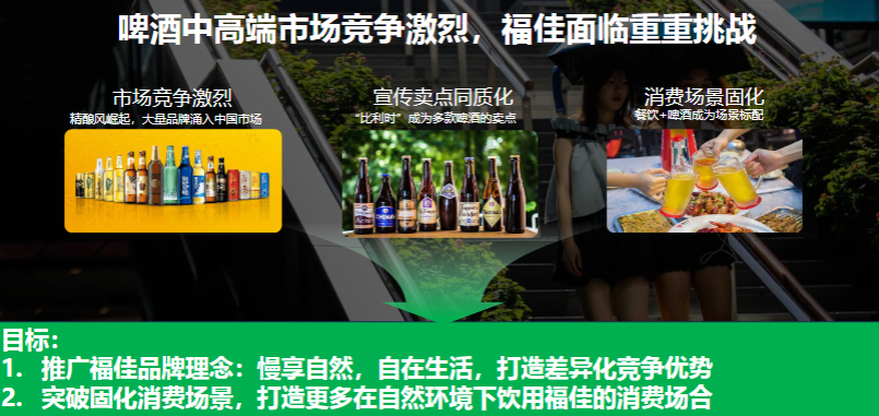 - 突破固有认知:改变消费者对啤酒消费场景的固有认知,引导他们在自然环境中享受福佳啤酒,是营销活动的一大挑战。