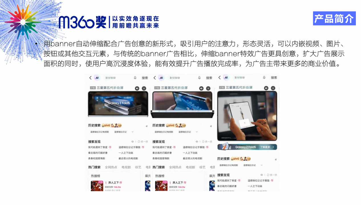 在广告市场竞争日益激烈的今天,用户对于传统广告形式的免疫力逐渐增强,广告主需要寻找更具创意和吸引力的广告形式来提升品牌影响力和营销效果。优酷推出的「聚焦搜索VB」广告产品,通过 banner 自动伸缩配合广告创意的新形式,为广告主提供了一种全新的广告解决方案。