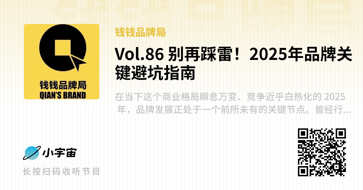 深入剖析品牌发展过程中的关键问题,并找到有效的解决策略,显得尤为迫切。这不仅关乎单个品牌的兴衰,更影响着整个商业生态的健康发展。本期《钱钱品牌局》围绕 2025 年品牌避坑这一核心主题,为品牌发展提供全面且实用的指引,助力品牌穿越重重迷雾,在激烈的市场竞争中脱颖而出,实现可持续的稳健增长。