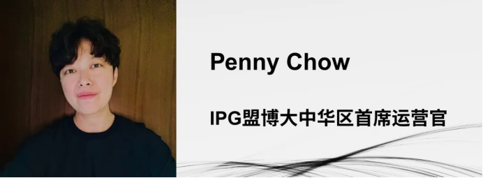 IPG 盟博大中华区首席执行官Melinda Po (薄荣蓉)表示:“Penny 和 Jay 的晋升实至名归。他们两位都展现了卓越的领导力 — 不仅在个人层面,更在集团层面,拥有宏大的愿景、策略洞察以及对卓越的不懈追求。此外,在IPG 盟博以‘专业为先’、围绕八大专业领域 — 业务领航、战略咨询、传播规划、投资管理、效果营销、数据分析、运营管理以及增长推动展开协作的模式赋能下,随着Penny 和 Jay 加入大中华区领导团队,我们构建了更加统一的运营方式和更加整合的组织架构,通过优化资源、加强协作,驾驭瞬息万变的市场变化,推动客户业务的增长。”