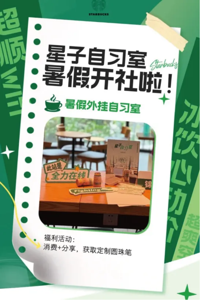 星巴克在2025年夏季推出的"星子自习室"服务,表面看是一次简单的空间功能延伸,实则蕴含着深思熟虑的商业战略。这一模式目前在广东、广西、海南等地的部分门店试点,提供免费电源插座、温水及Wi-Fi,不设消费门槛、不限使用时长,部分门店还鼓励顾客自带书籍交换阅读。