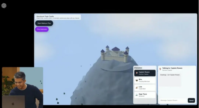 现场演示中,OpenAI后期训练负责人Yann Dubois要求GPT-5生成一个用于学习法语并带有互动游戏的网站,GPT-5在几秒钟内就编写了数百行代码,并展示了运行的前端界面。更令人印象深刻的是,OpenAI直接展示了一款仅靠一段提示词就由GPT-5创作的3D游戏,其中的物理效果准确还原了现实世界行为。